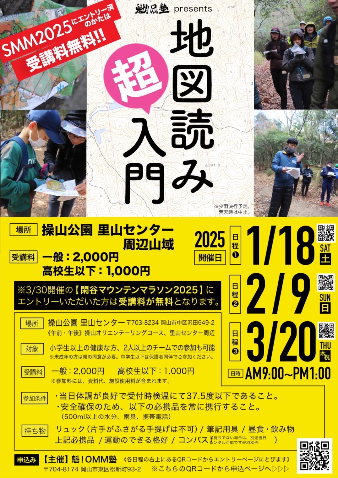 なお、本大会(SMM2025)にエントリーされた方はこの『地図読み超入門〜SMM事前講習会』は受講料が《無料》となります。(※モシコムにて申込が必要となります)